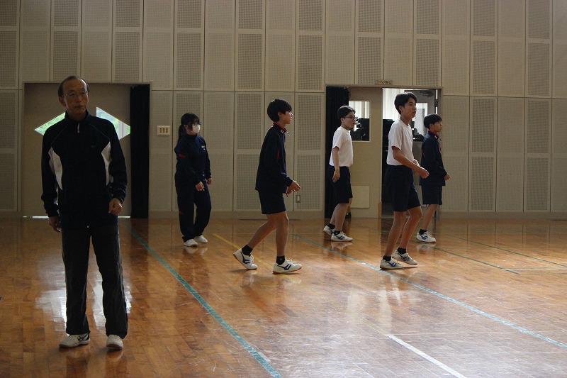 現在保健体育科では、プロの先生にお越しいただき、ダンスのご指導をしていただいています。「ダンスホール」に合わせ、少しずつ練習し、かなり上達しています。各グループでアレンジを加えながら、最後の発表会に向けてノリノリで頑張っています。
