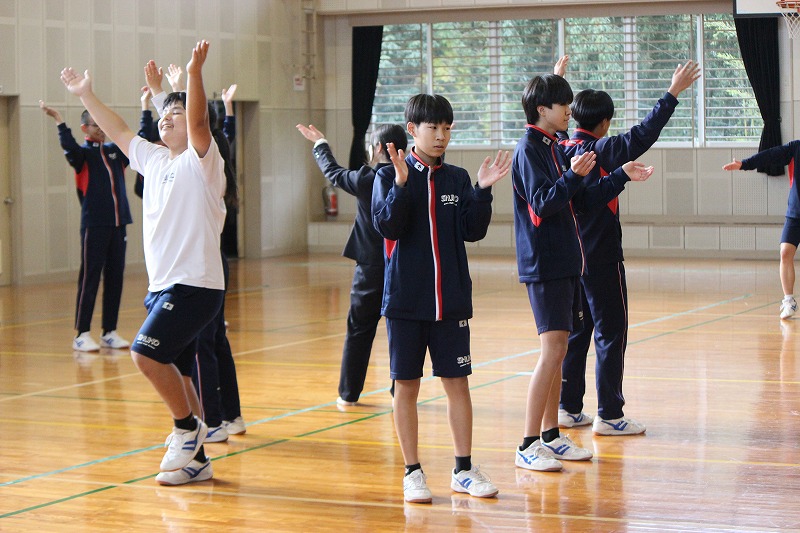 全校保健体育でダンスを学習していますが、いよいよ最後の発表会の日でした。終わりのパートは各班オリジナルで、それぞれ工夫を凝らした楽しいパフォーマンスを披露してくれました。大変盛り上がり、3年生だけで踊った後は全校でも踊り、踊ることの楽しさを実感することができた素敵なひとときでした。講師の先生、本当にありがとうございました。