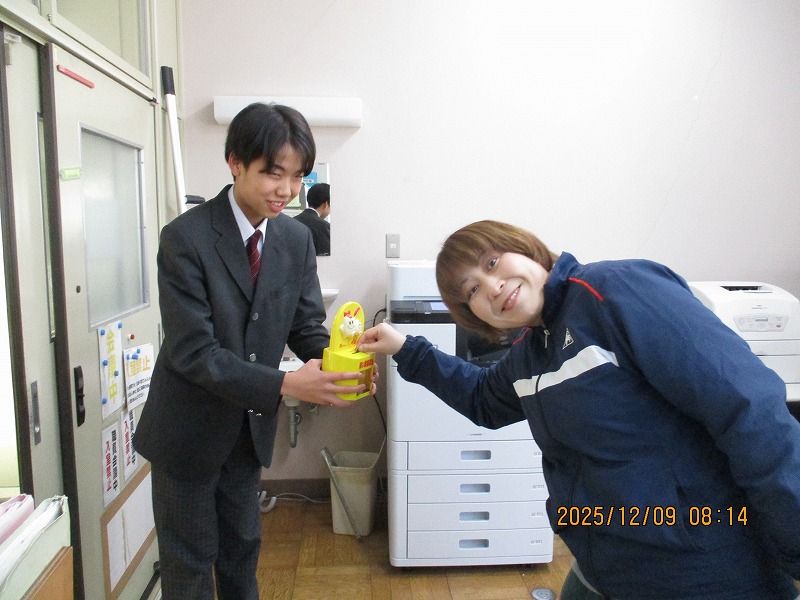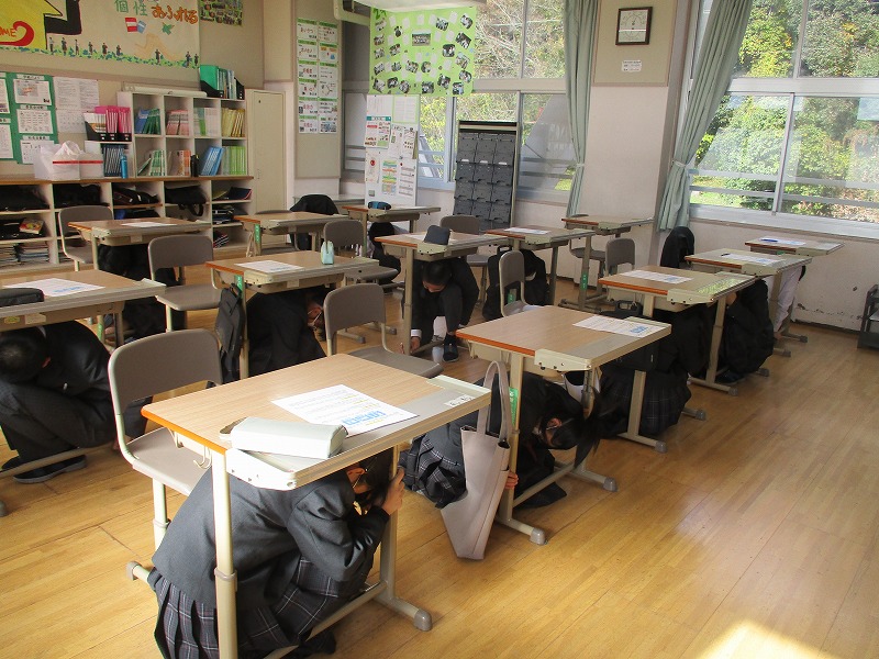 11月28日(金)、避難訓練と防災講習を実施しました。避難訓練は、地震による火災発生を想定し、シェイクアウト訓練から始めました。皆、迅速に落ち着いて避難できたと思います。 引き続き、防災講習会を実施しました。地域の防災士「じもピース」の皆さんにご講話をいただき、避難所の様子や新聞紙で作るスリッパなどを教えていただきました。じもピースの皆様は、地域の皆さんがいつも安全で平和に生活ができるようにと活動されておられます。その熱い心意気にも触れることができ、非常に有意義な学びになりました。じもピースの皆さん、ご指導ありがとうございました。