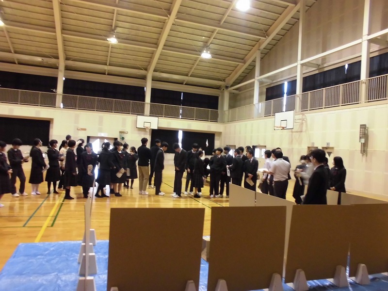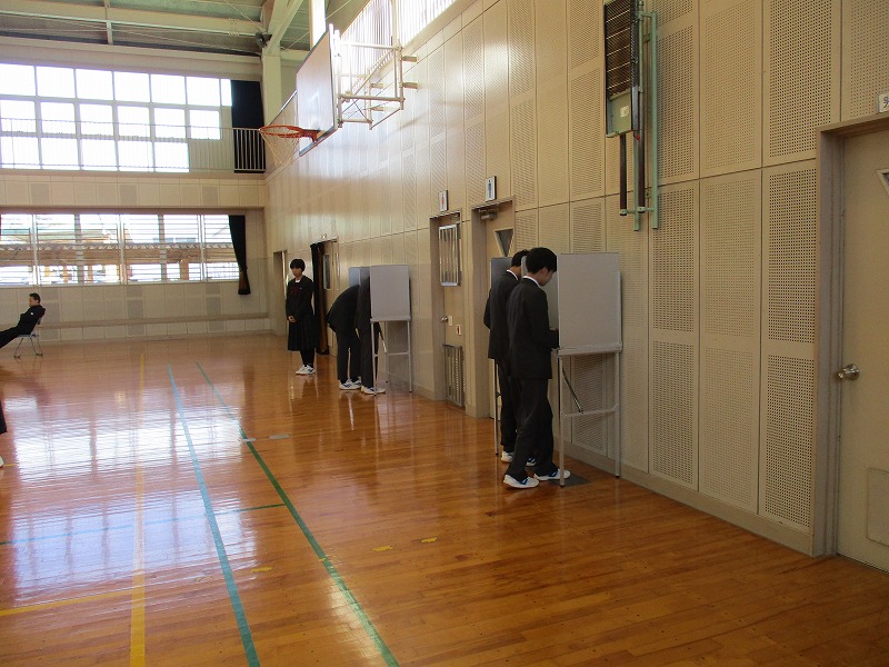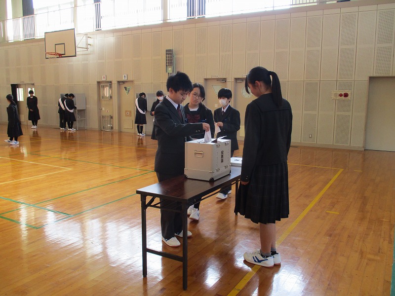 12月5日(金)、生徒会役員立候補者による立ち会い演説会と、選挙が行われました。どの立候補者も、秋芳中をさらによくしよう、生徒のみんなが充実した学校生活を送れるようにしようという気持ちがとてもよく伝わってきて、堂々とした立派な態度でした。その後は、生徒全員が、秋芳中の今後を任すことができる立候補者を投票し、真剣な態度で臨んでいました。