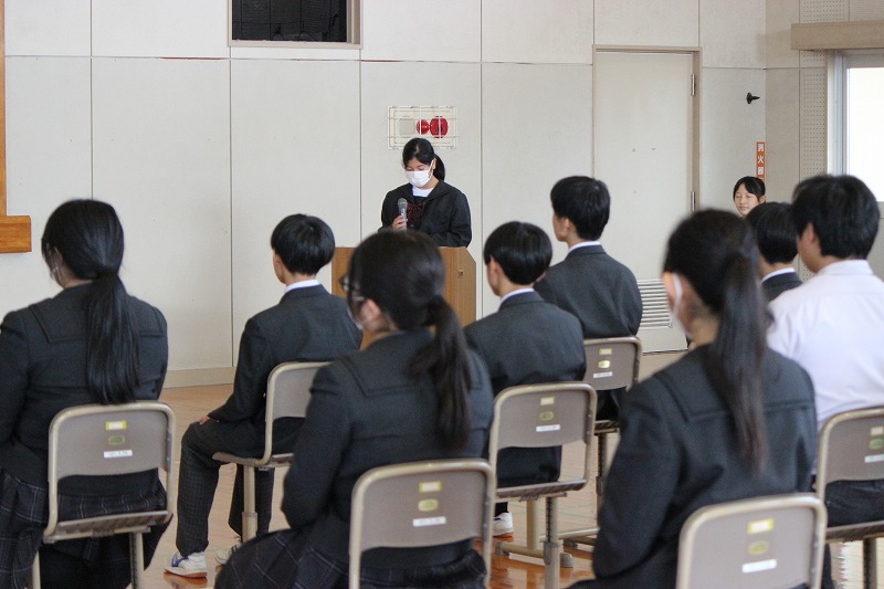 各部で、後輩が3年の先輩に、お別れのあいさつをしました。3年生も、自分達の思いを後輩に伝え、一緒に頑張ってきた日々を懐かしみました。