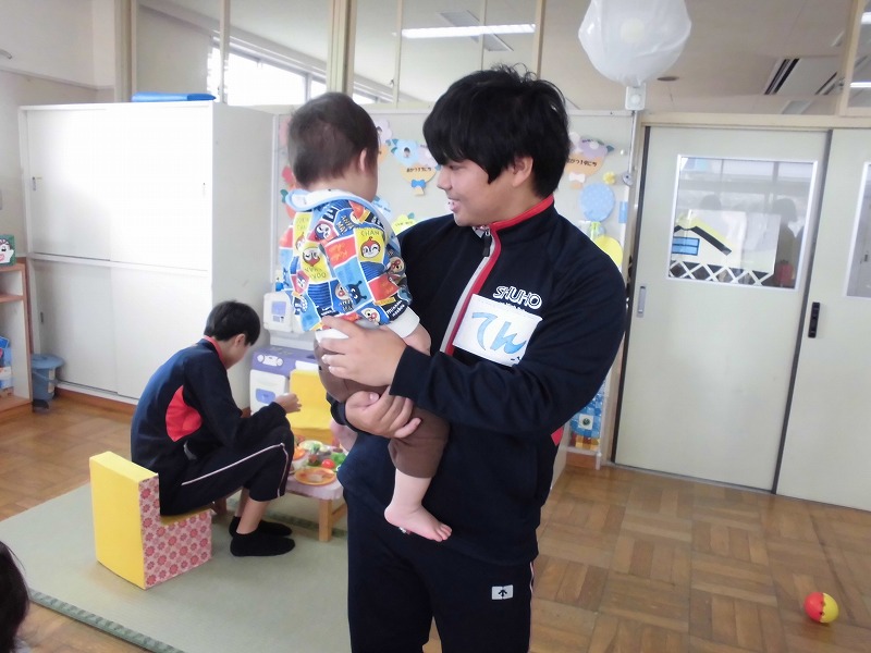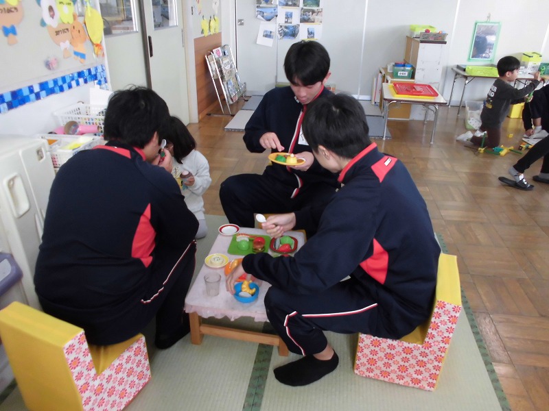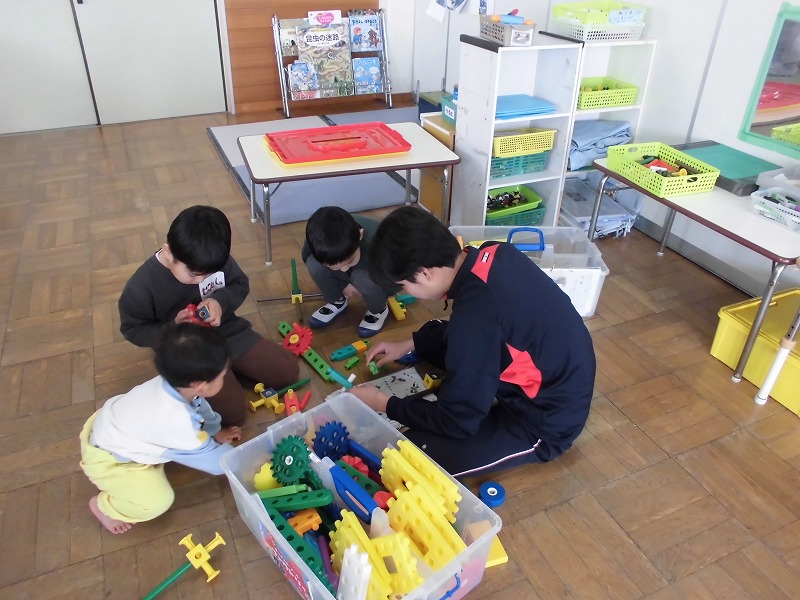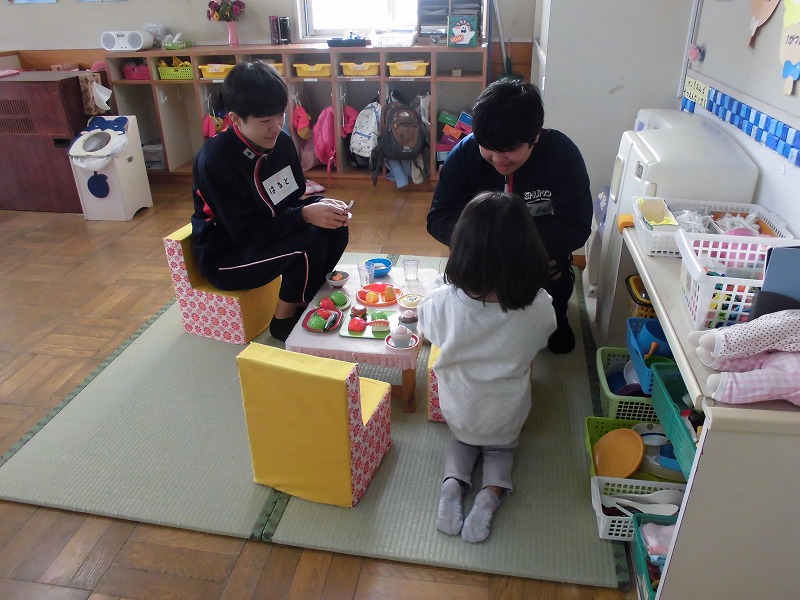 12月12日(金)、秋吉保育園での実習でした。天候の関係でずっと中遊びでしたが、絵本を読んだり、ままごとをしたり、ブロックを作ったり、創造力旺盛な園児たちと仲良くふれあうことができました。3年生にとっては、大変貴重な経験になったと思います。