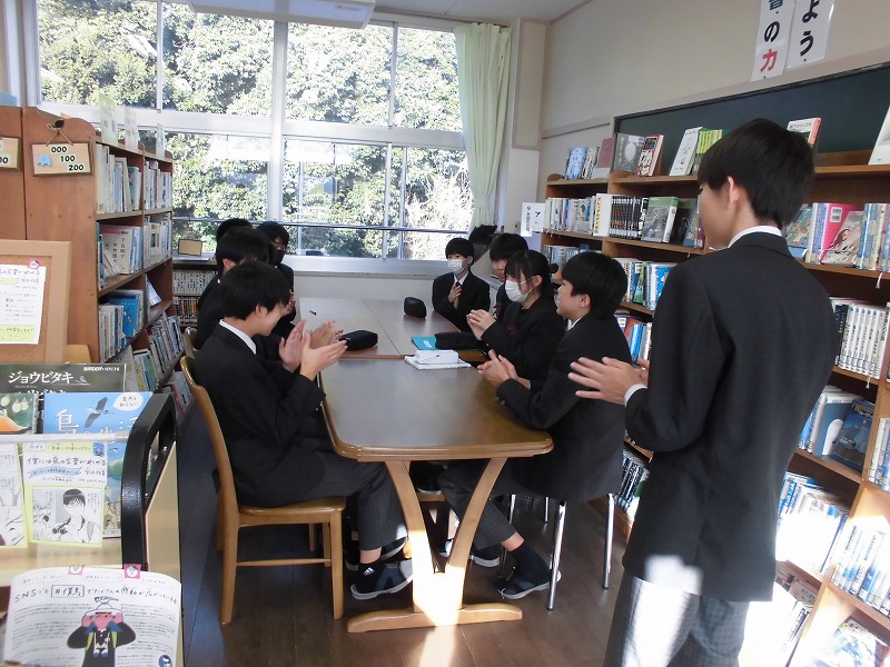 暑さも少し和らぎ、今年度も残り半分となりました。10月の全校集会では、専門委員長がこれからの取組や目標を発表しました。総務委員長から授業の最初や終わりの礼についても新たな提案があり、さらに活気が出そうです。また、表彰式が行われ、美祢市読書感想文優良賞の生徒の表彰も行われました。