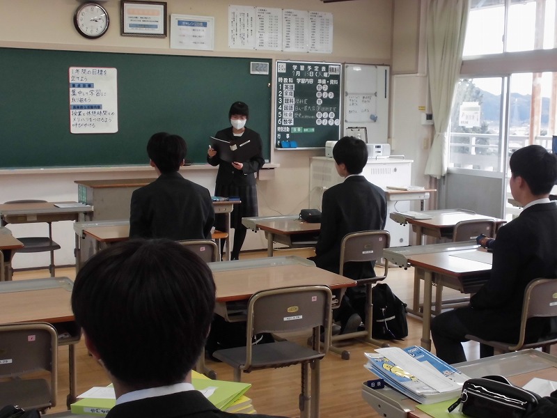 いよいよ3月7日が卒業式です。本日3月4日は、3年生にとって最後の授業、給食でした。お世話になった教科の先生にメッセージを渡したり、先生からの最後の話を聞いたりしました。給食もひな祭りのお祝い給食で、楽しくいただきました。あと少しと思うと、寂しいですが、たくさんの思い出を胸に、笑顔で送りたいと思います。