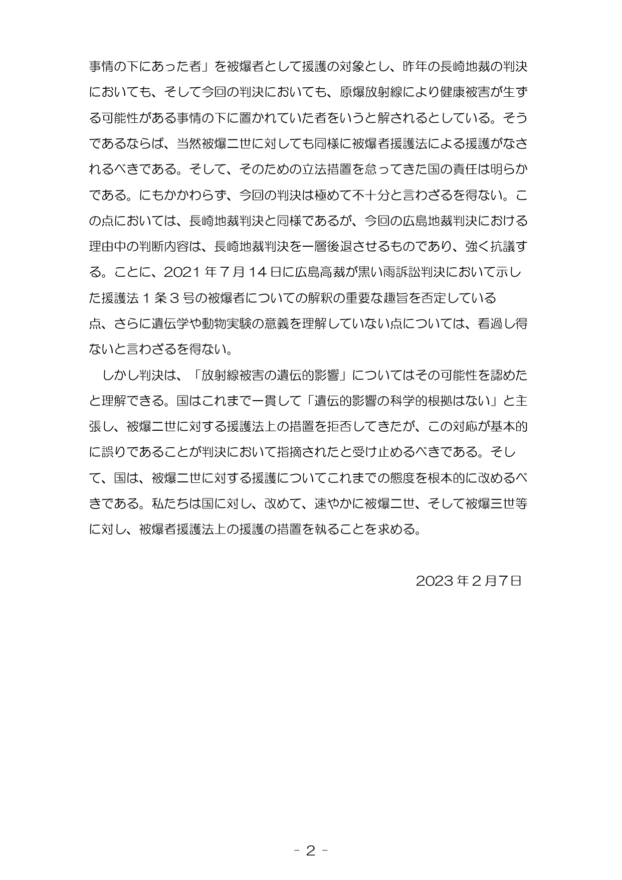 | 広島地裁判決 − 被爆二世集団訴訟 − |