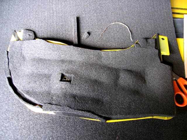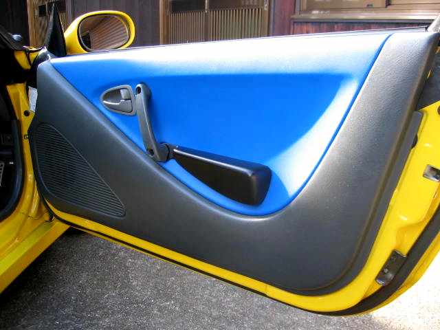 一旦パネルをばらして、きちんと脱脂してから貼りこみます。ダッシュボードと違って凹面なので、脂分がのこっているとすぐに浮いてしまいます。