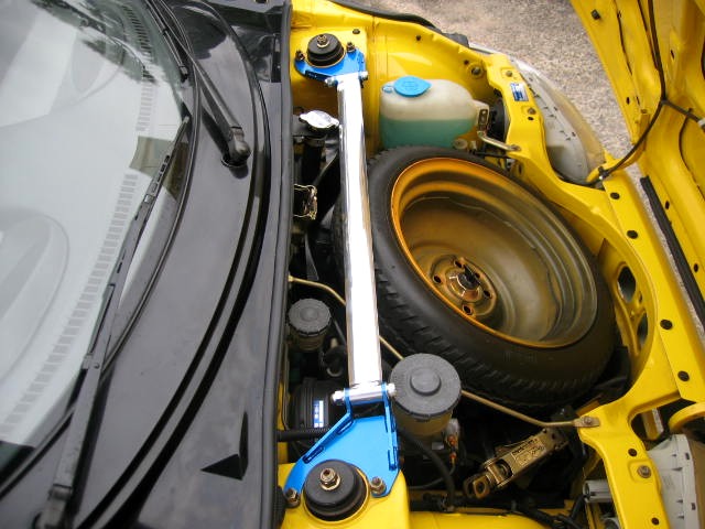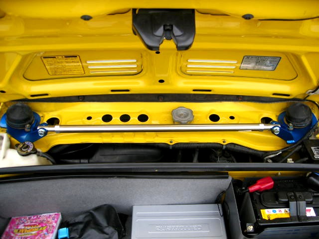 以前乗っていたパジェロのパーツと、無限のステアリング&シフトノブをヤフオクで処分した分で、前後にタワーバーを入れてやりました。