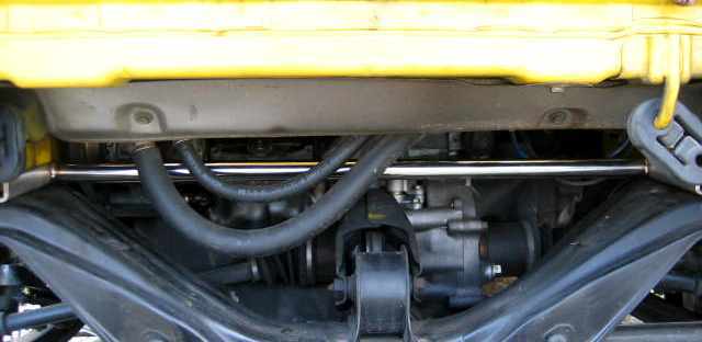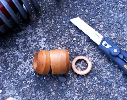 さて、効果のほうですが、フロントは変化が大きいです。サスのバタつきが収まって、接地感がUPしたのがわかります。ノーマルの時は、コーナリング中にバルクヘッドより前のフレームだけがよじれる感じがしてましたが、それが少し収まりました。