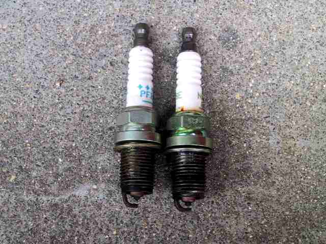 左がインプレッサ、右がビートのプラグです。インプ用は純正でもプラチナです。(^_^;)