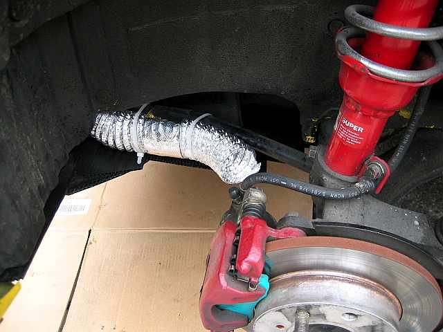前回の走行会では、パッドだけでなくフルードもダメになっていた(エアを噛んでいた?)ようだったので、念を入れて、ブレーキ冷却ダクトを付けてみました。