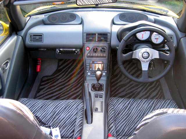 リヤの写真にちょろっとCDチェンジャーが見えてます。福岡のセコハン市場で見つけてきました。6枚チェンジャーなんで座席の下に入るかな・・・・っと思ったんですが、あえなく玉砕。カーペットにマジックテープで固定してあります。