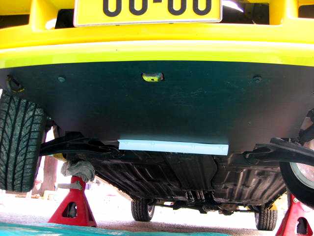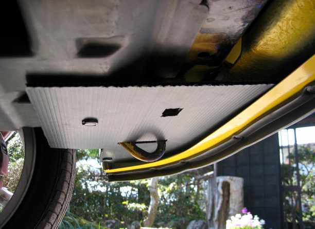 純正アンダーカバーは、後端についているフラップを削除しました。パネルと干渉するためです。