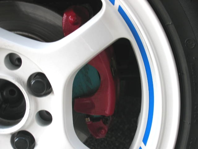 この塗料、キャリパー塗装専用なんですが、小倉のスーパーオートバックスまで行かないと買えません。しかもこないだ行ったら、赤が無くなってました。(T_T)