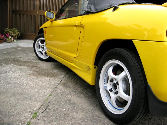 インプやZみたいに金色でもよかったんですが、黄色のボディには赤が映えそうだし、ホイールも白だし・・・・・。