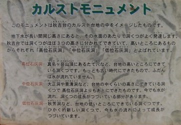 | このモニュメントは、秋吉台のカルスト台地の中をイメージしたものです。 | |||||||||||||||||||||||