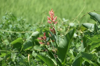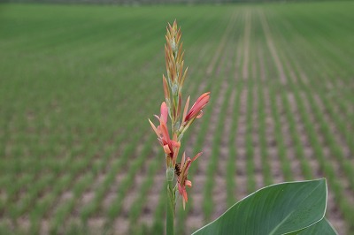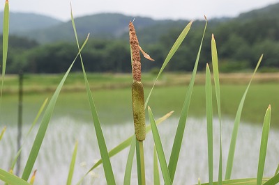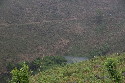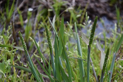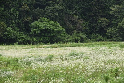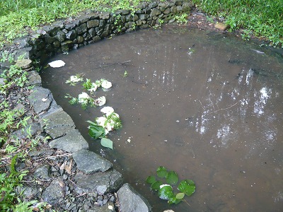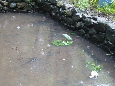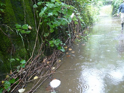 昨夜から降り続いた雨のため、帰水に季節外れの一時湖が現れました。 |