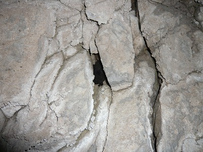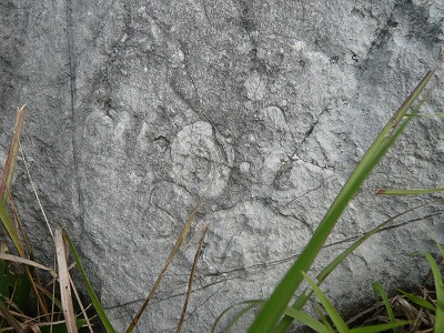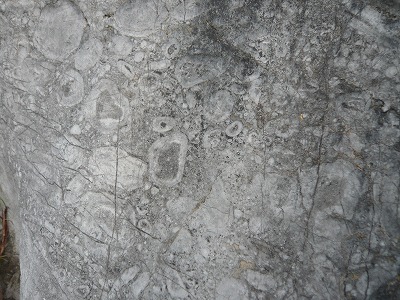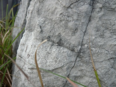 アンモナイト化石(新設通路入口右側の石灰岩) |