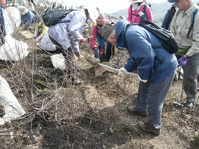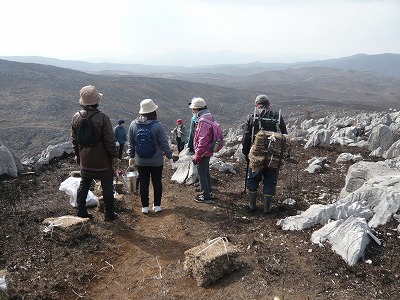 26.3.7 「秋吉台遊歩道の補修シバ張り」に参加☛🔘