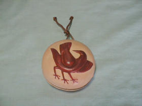 「花神鈴」 幕末、封建制度を倒し近代国家建設のために努力した大村益次郎は、明治二年旧思想の士族の凶刀にたおれました。春の花を咲かせるために野山を駆けめぐる神が花伸です。美しい花が咲いたとき、そこには花神の姿はありません。明治になり日本は近代国家の体制も整い栄えていきますが、それを待つことなくして逝ってしまった大村益次郎は、まさに花神というべきでしょう。 大村益次郎は、はじめ村田蔵六と名乗っていました。蔵六は亀の異名で、亀はつねに頭と尾、四本の足の六つを甲羅の中に蔵していて、事ある時に備えているといいます。益次郎も近代国家建設を目指してその計画を甲羅の中であたためていた時代もあったことでしょう。その亀をうつしたこの土鈴に、大村益次郎の偉業をしのんでください。 |