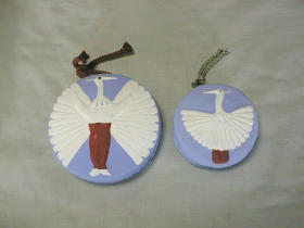 「さぎ舞鈴」 津和野の弥栄神社は素戔鳴尊が祭伸で、作物豊穫の作り神様です。また、櫛稲田姫と結婚の時「八雲たつ」の歌は日本最初の和歌といわれ、文学・学問の神、縁結びの神として信仰があります。神事のさぎ舞は全国的に有名で、この清らかな白さぎは神のお使いとしてその舞いを拝する人は諸悪消除福徳来訪があるといわれております。 ここにさぎ舞を鈴として、ご一家様のご多幸を祈る次第であります。 |