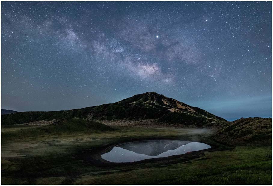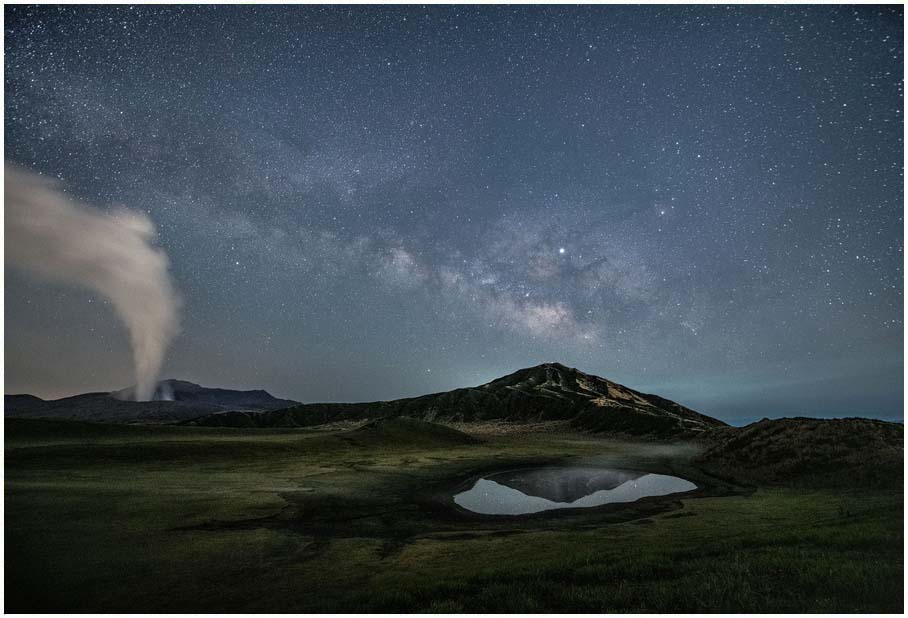 阿蘇草千里で、銀河の写り込みを狙って見たが?