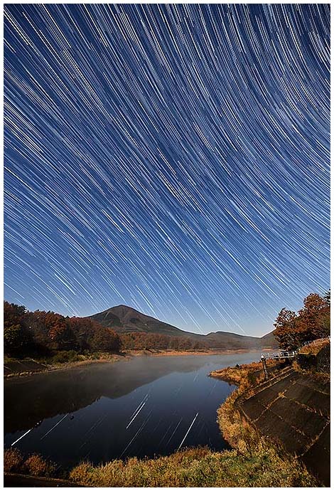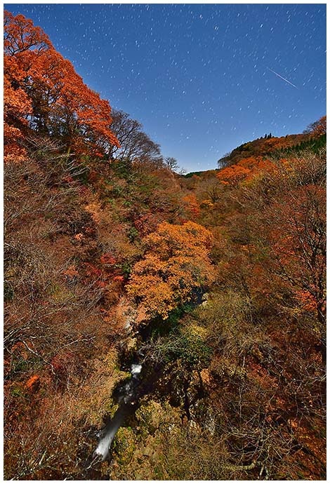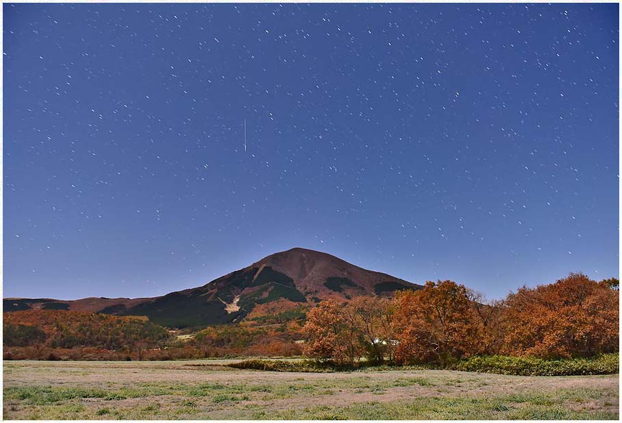 湧田山と山麓の紅葉を撮影していたら、ここでも流れ星が。この時期、数は多くないが、しし座、おうし座等の流星群の活動期になるので