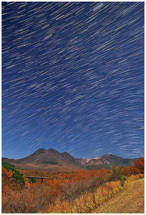昨年から消化不良になっていた、紅葉と星空の撮影に、2日、久住へ通った。