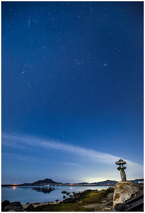 ダメもとで出掛けた極大日は、雲の合間を流れる流星を見る事が出来たが、カメラの向いている所には