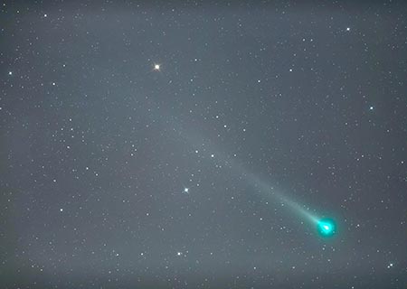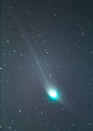 尾が確認できる。思っていた以上に、しっかりした彗星の姿に安心した。標準レンズなどでは、物足らないが200mm以上の望遠レンズなら、十分
