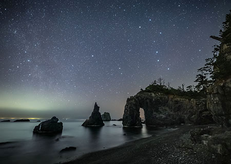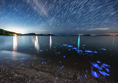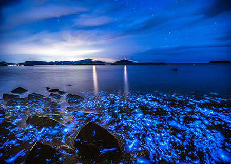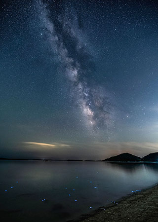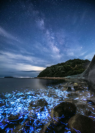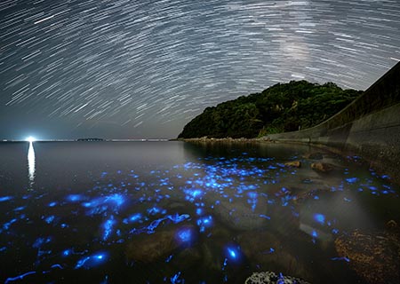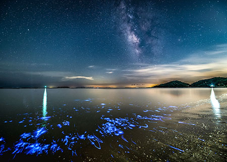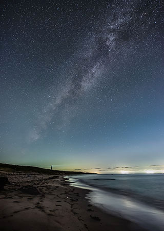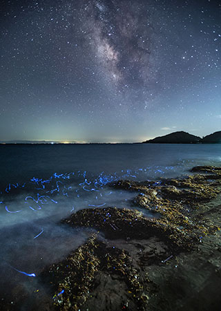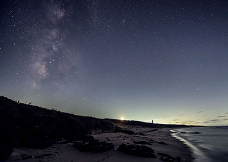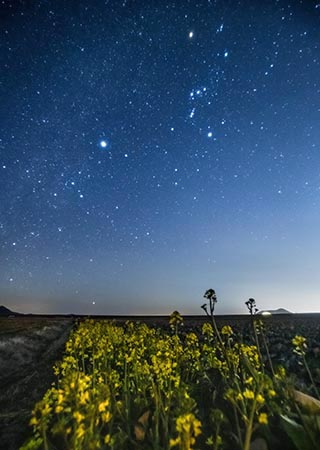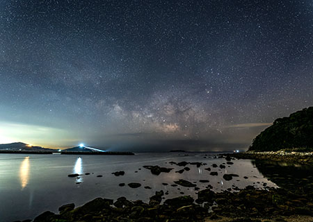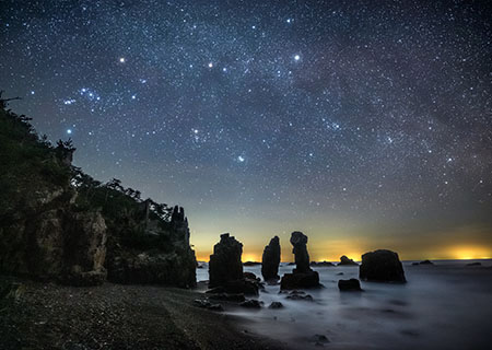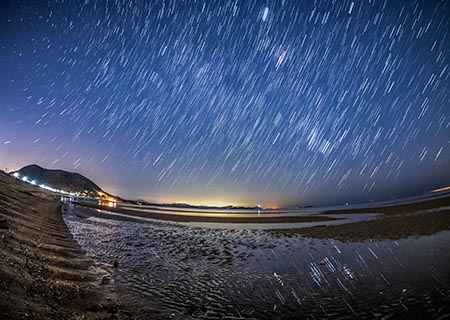 キワラビーチでオリオン座の映り込みを狙って見た。