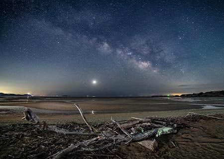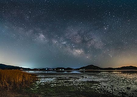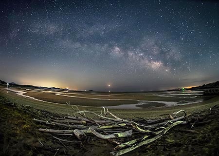 対角魚眼が丁度良い。干潟が狭くなり写り込むスペースが