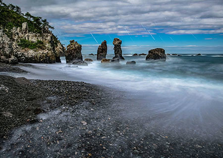 本山岬は、干潮のタイミングが合わないと撮影出来ない所なので