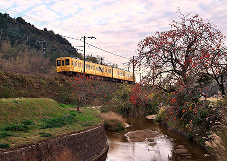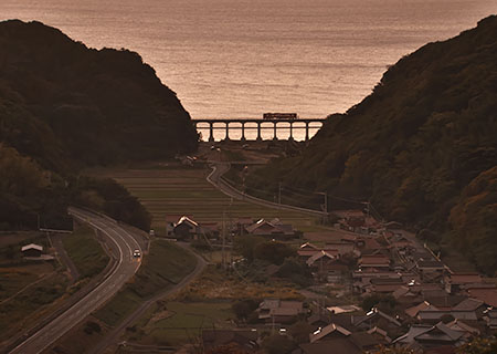 宇部線の厚東川鉄橋で夕日と電車を撮影してみた。