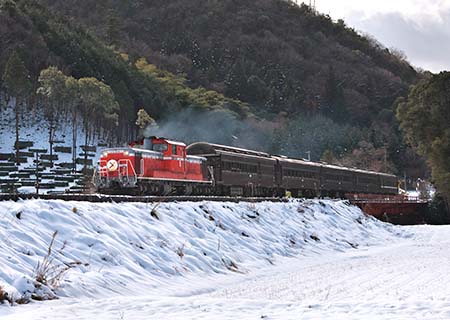 正月三が日で最高の天気か?車の中は暖房がいらない状態。正月の撮影は、何年ぶりか?C58の時代に何度か?とりあえず今年は定番ポイントを押さえる事にする。いつもとは、停車駅が違うことに長門峡で気が付く。さらに補機が付いている為、スピードが速い、煙も申し訳程度、ちょっと期待はずれか?と思いつつ、沿線で冬らしい光景を探したが見あたらなかった。初詣の車で渋滞を覚悟したが思った以上にスムーズに移動でき、結果はともあれ、5ポイントで撮影する事ができた。梅のシーズンが待ち遠しく感じた一日でした。