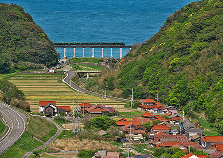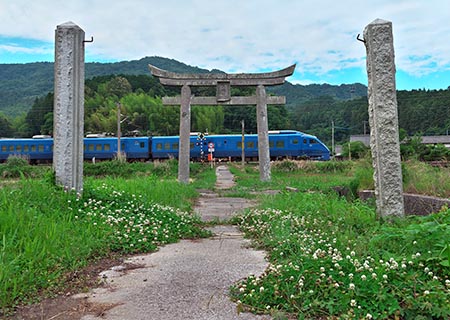 線路が横切る不思議な神社が気になっていた。神社の前は川が流れて