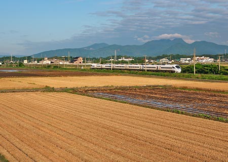 25周年の記念イベント列車の撮影に出かけた。台風接近でほとんどあきらめていたが、7時の時点で日本海に