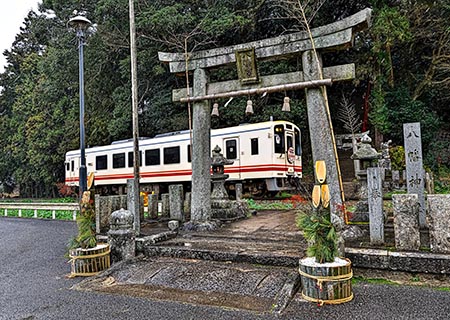 一両の車両が行き来する、のどかな路線である。その駅の中で、参道を