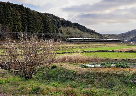 久しぶりに瑞風を撮影してみた。例年なら梅が咲いているはず