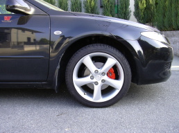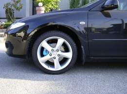 キャリパー塗装しました。「レッド」と「スカイブルー」の左右非対称色キャリパーです。