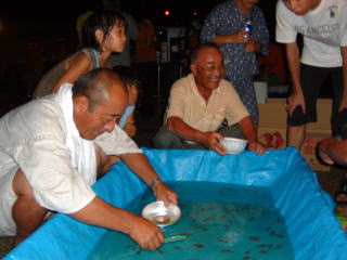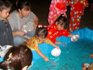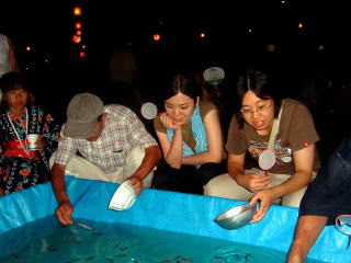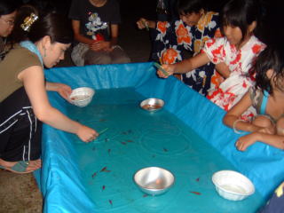今回の盆踊りでは老若男女を問わず、「金魚すくい」が人気のようでした。