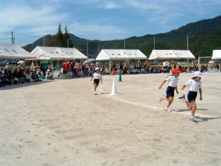 ようやく秋らしくなった9月24日(日)、「久兼の里」の子どもたちが通っている防府市立小野小学校では、毎年恒例の「秋季大運動会」が開かれました。 現在地に移転して3年目、かなり広めのグランドで開かれたせいかもしれませんが、メインの子どもたちの数が今ひとつ少ないような気がしました。 裏を返せば、地域の人たちの参加が多いためかもしれません。(地域全体で盛り上げる運動会が大切です)