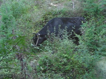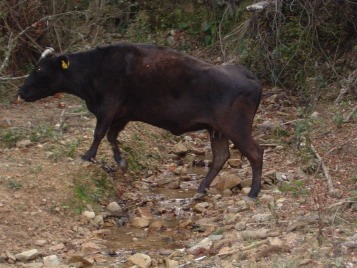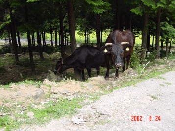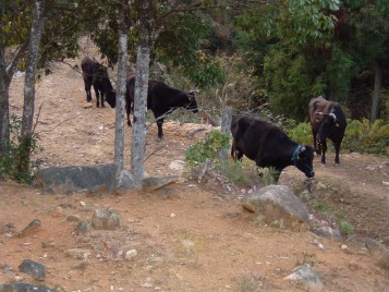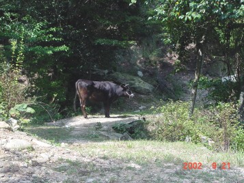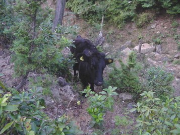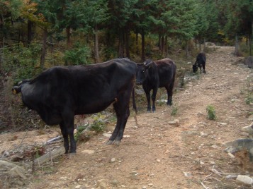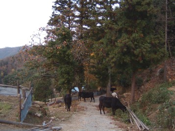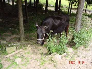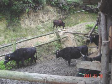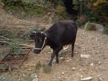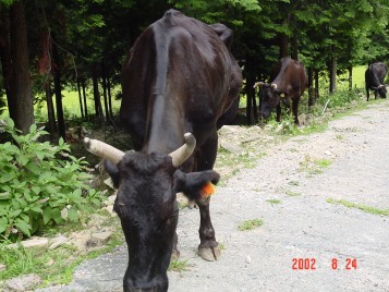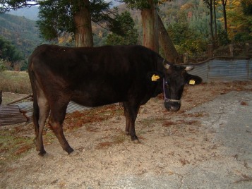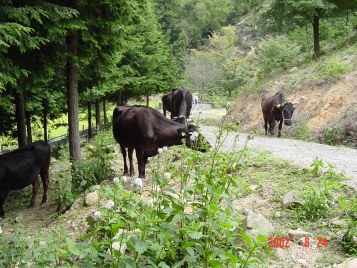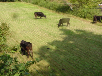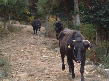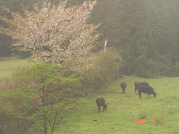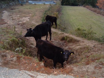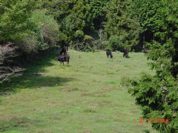 そして、夕方には里山からおりて、牛舎の傍らまで帰ってきます。
