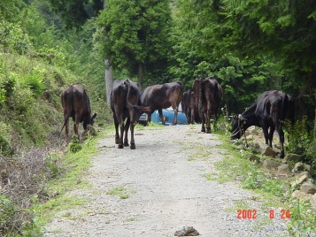 後半:棚田でのウォーミングアップが済むと、里山へと出かけていきます。そして夕方には、牛舎の前まで戻ってきます。