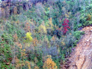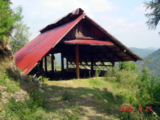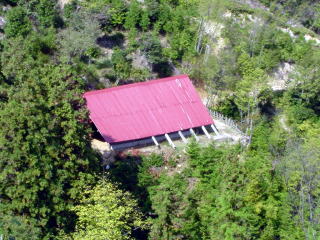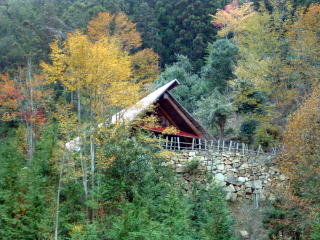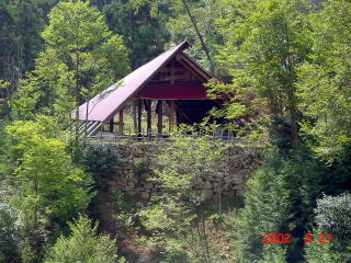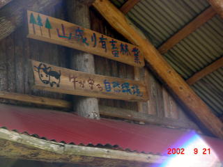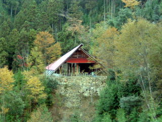 夏と秋の里山の様子をご覧ください。中腹にある交流施設を兼ねたログ牛舎を中心にしてあります。 (16年9月の台風被害によりログ牛舎は大きく破損しており、また周辺も形状が変わっています。)