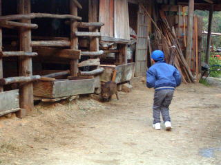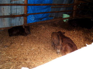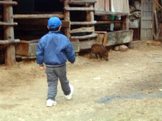 この頃になると、うり坊も「ふるさと牧場」をわが家のように思うようになり、牛舎の周りをウロウロするだけでなく、牛舎内の子牛と一緒に休んだり、訪れた子どもに体をさわらせるようになってきました。