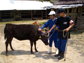 昨年はお休みだった総合的学習の一環として取り組まれている職場体験に、地元・防府市立小野中学校2年生2名がふるさと牧場にやって来ました。 今年は、実際の職場体験を2日かけてやることから、事前に予行演習のようなかたちで5月14日(日)のこぶしの里牧場交遊会・行事である「ノシバの植え付け」体験に参加してもらいました。