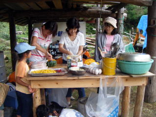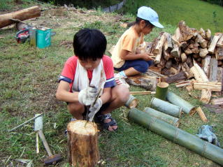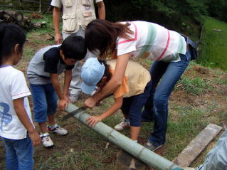 子どもたちは、里山から切り出された孟宗竹を使っての食器づくりや竹細工に夢中のようで、お母さんたちも牧場内で栽培された野菜を使った料理づくりなど、親子揃っての楽しいひとときを過ごしていたようです。