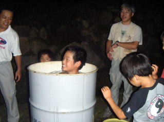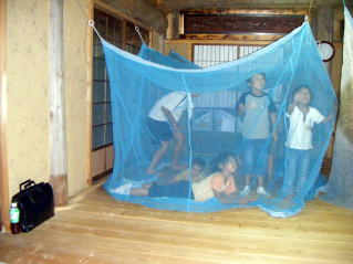 夜は、ドラム缶仕立ての露天風呂や交流ハウス「歩知庵」での蚊屋張り内での宿泊体験などと、子どもたちの夏休みの思い出がたくさんできたようです。