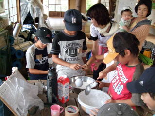 8月8、9日と「夏休み!里山で親子で家畜とのふれあい・体験ツアー」(第5回里山での牛とのふれあい体験)がありました。 1日目の夕方までのサポーターとしてお手伝いをさせていただきました。 子牛たちとのふれあい、キャンプ、竹を加工しての食器作りや、県産小麦(ニシノカホリ)を使ったパン・ピザ作り、ふるさと牧場名物の露天風呂など、夏休みの思い出をたくさん作ってもらいました。