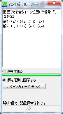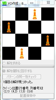 それぞれでクイーンの配置を求めるソフトで、配置の図示もできます。